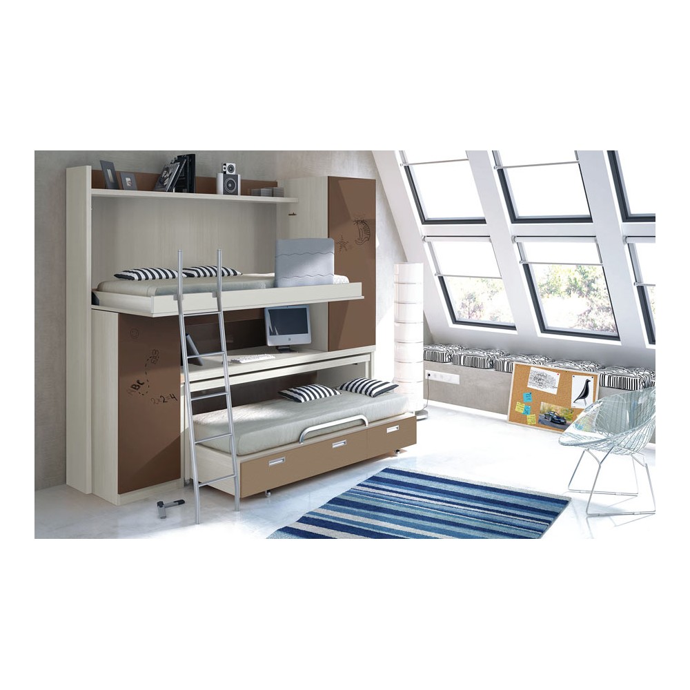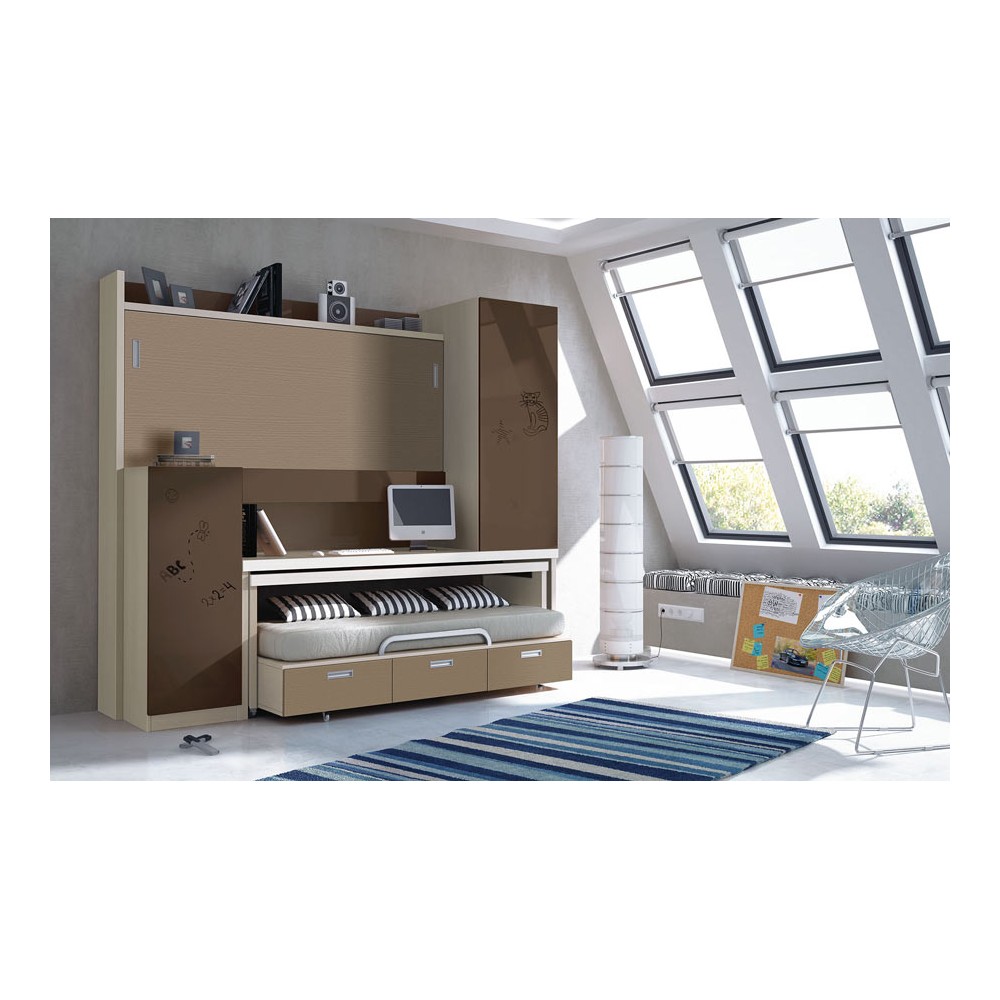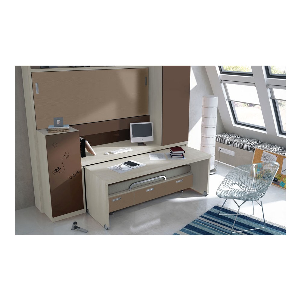 Ademas, este sistema incluye una gran mesa de escritorio abatible también, que va bajando a la vez que abrimos la cama de abajo.