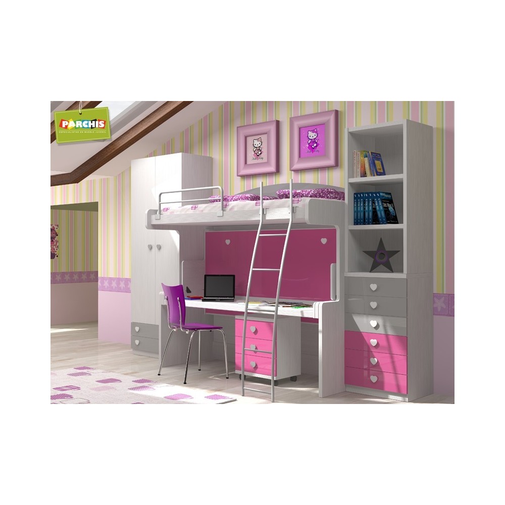Compuesto por una litera doble con dos camas escondidas y una gran mesa de estudio para dos personas.