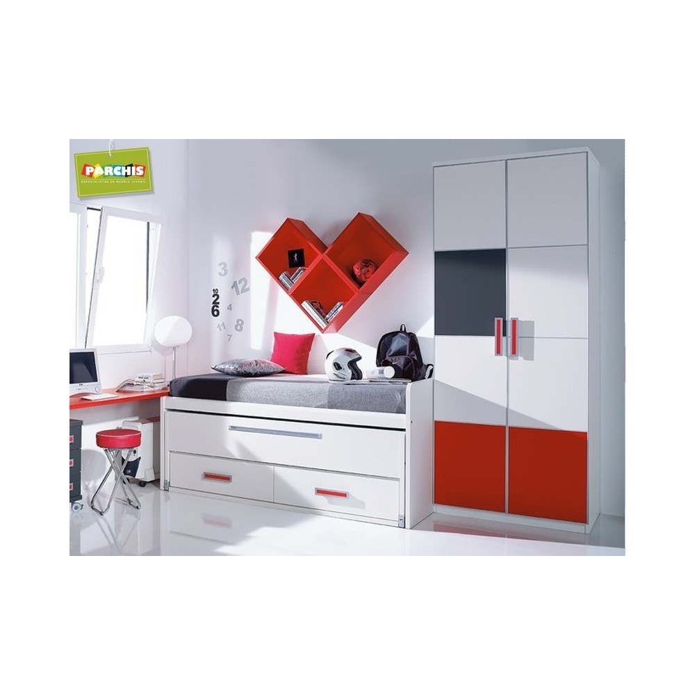 Juveniles baratos para habitaciones completas de chicos adolescentes. Mueble cama compacto, con dos camas, cajones.