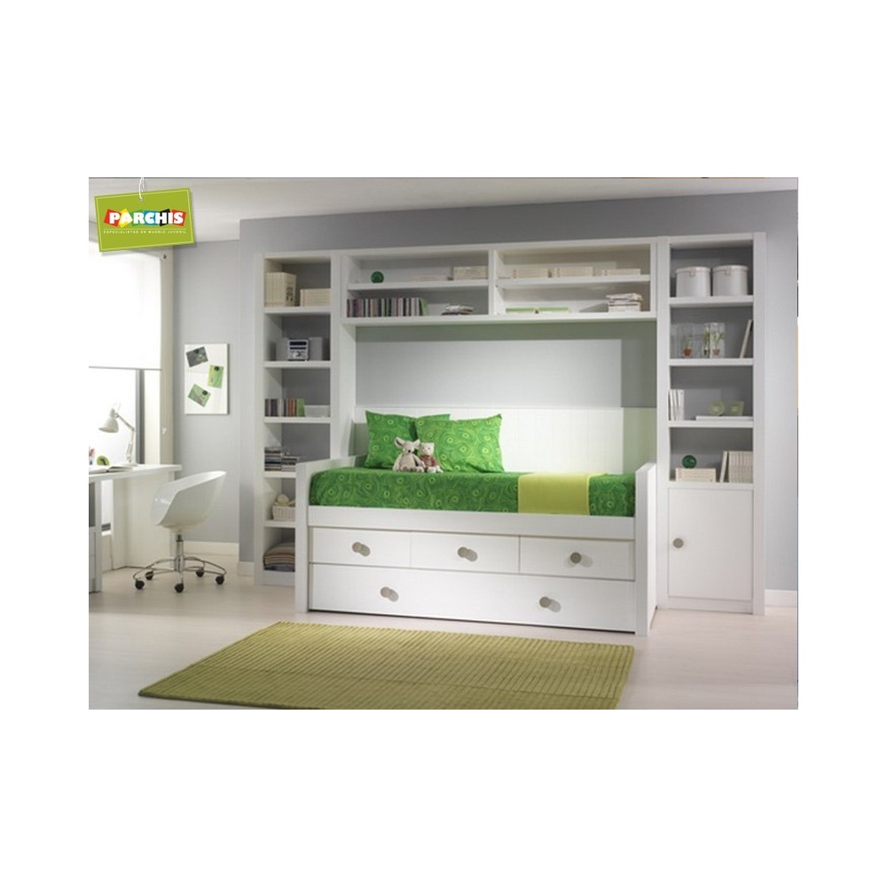 Muebles infantiles con cama compacta doble en blanco lacado.