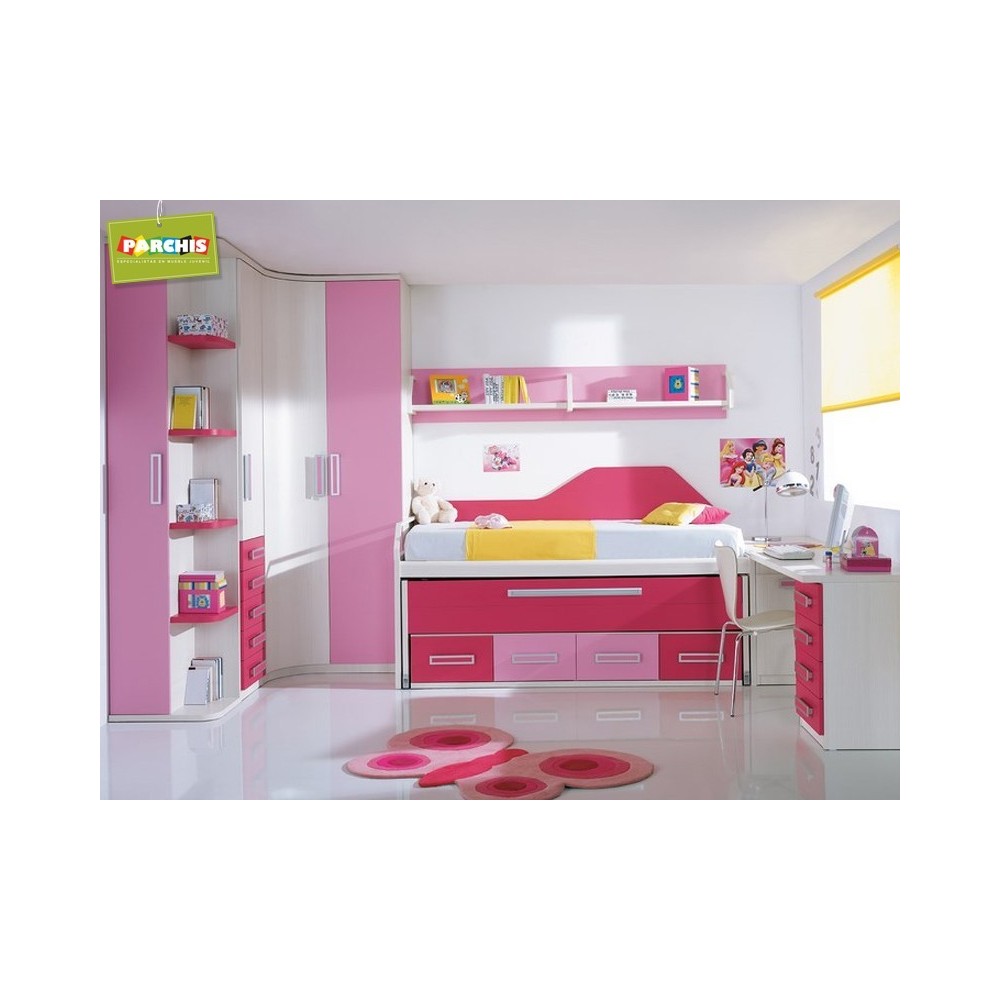 Camas Juveniles en Madrid. Muebles integrales para tu Dormitorio Infantil, camas nido en rosa.