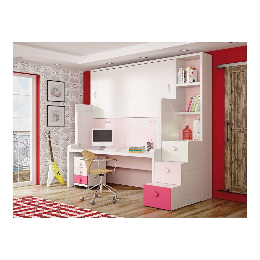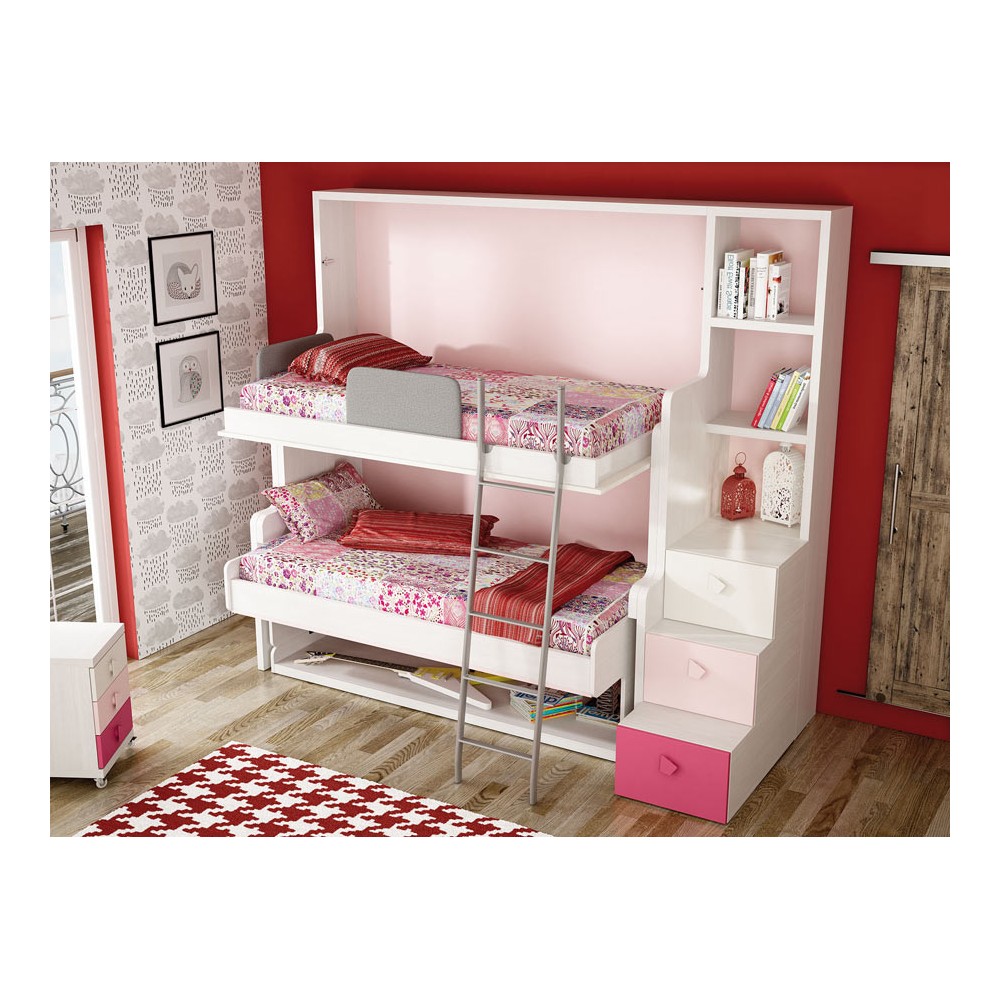 Dormitorio infantil con mueble litera abatible, con dos camas de 90x190.