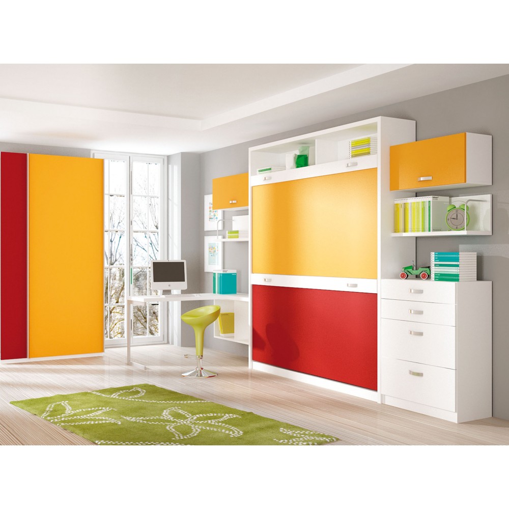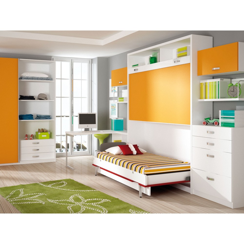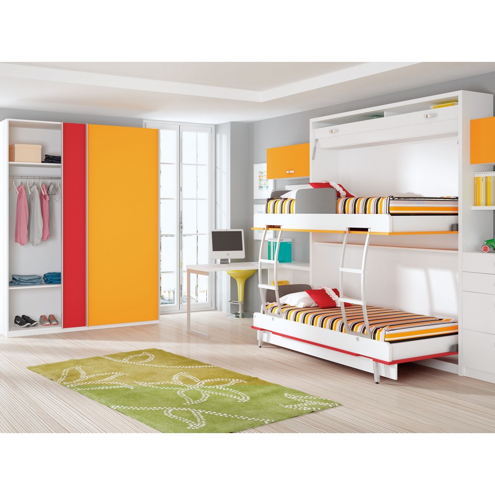 Dormitorios Juveniles con mueble litera horizontal. ¿Tienes dos niñas y quieres que duerman juntas? Este modelo te vendrá genial, son dos camas en un solo mueble litera donde podrás subir y bajar las camas en muy poco tiempo cómodamente todos los días