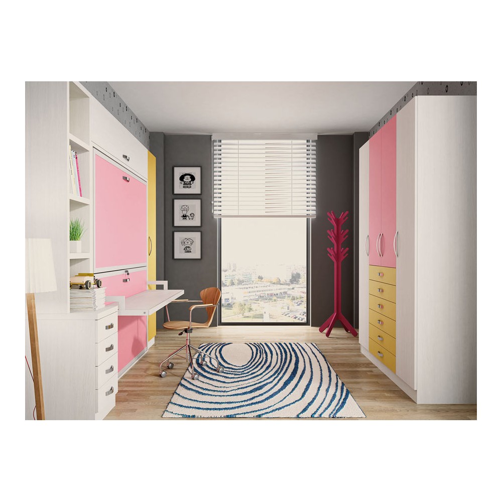 Habitación compuesta por un módulo de litera abatible súper funcional, ya que quedara todo recogido durante el día.